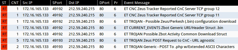 - 212.59.240[.]215:80 - ET CNC Zeus Tracker Reported CnC Server TCP group 12 (sid:2404172)