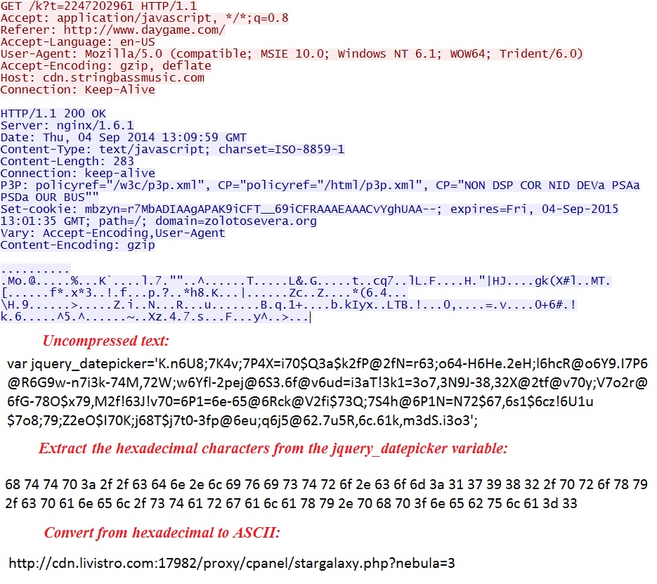 - 2014-09-04 13:09:58 UTC - 192.185.16[.]158:80 - cdn.stringbassmusic[.]com - GET /k?t=2247202961