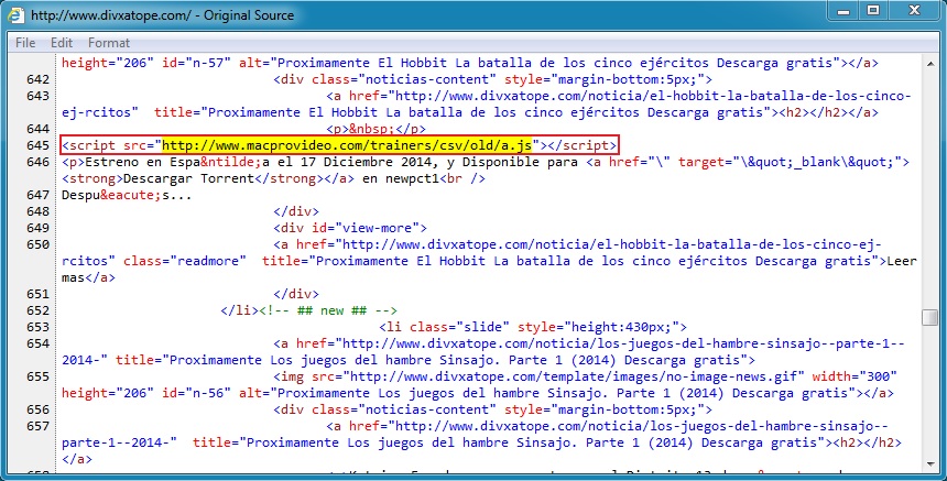 - 188.95.248[.]45 - www.divxatope[.]com - Initial website