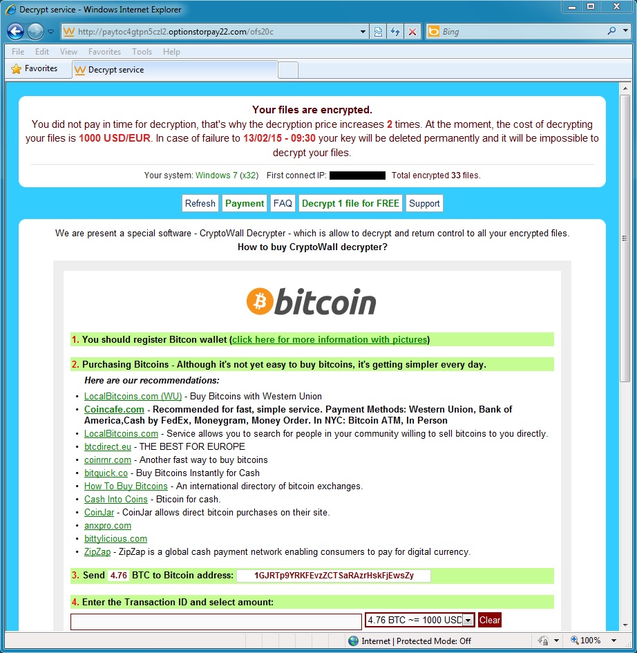 MALWARE PAYLOAD 1 OF 4 - CRYPTOWALL 3.0 RANSOMWARE: