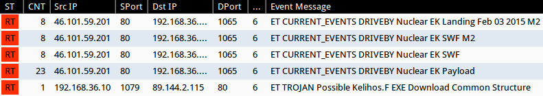 - 46.101.59[.]201 port 80 - ET CURRENT_EVENTS DRIVEBY Nuclear EK Payload (sid:2019873)