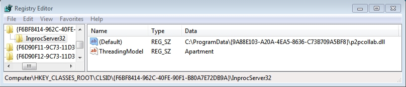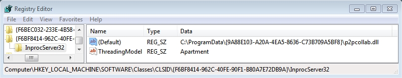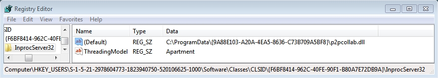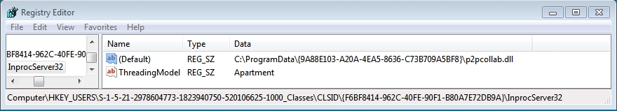 REGISTRY CHANGES NOTED ON THE INFECTED HOST