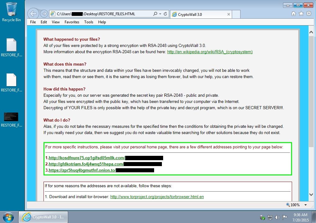 - 2015-07-20 13:30:47 UTC - gfdkotriam.fo4j4wnq51hepa[.]com - POST /[information removed from the pcap (redacted)]