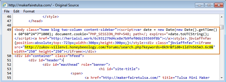 - makerfairetulsa[.]com - Compromised website (appears to be fixed as of 2015-09-03)