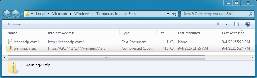 - 2015-09-04 17:23:53 UTC - 69.144.171[.]44 port 443 (https) - GET /warning77.zip