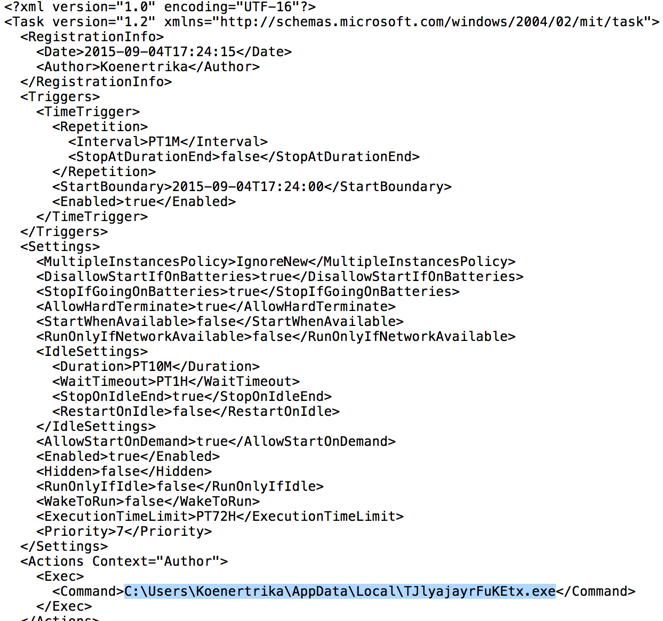 Task to keep the malware persistent: C:\Windows\System32\Tasks\TJlyajayrFuKEtx