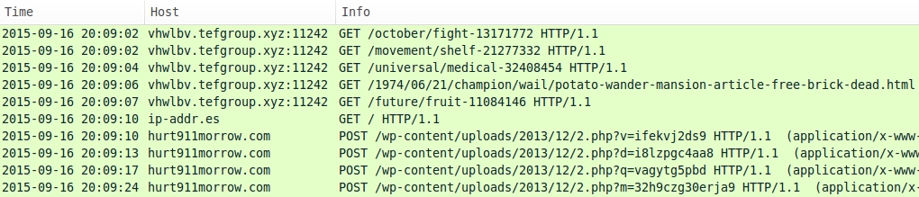 - 2015-09-16 20:09:06 UTC - vhwlbv.tefgroup[.]xyz:11242 - GET /1974/06/21/champion/wail/potato-wander-mansion-article-free-brick-dead.html