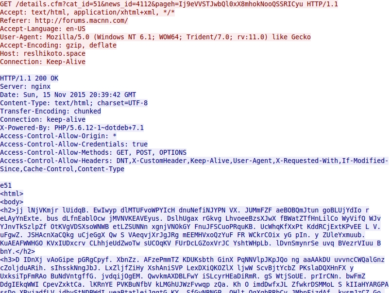 - 2015-11-15 20:39:43 UTC - reslhikoto[.]space - GET /details.cfm?cat_id=51&news_id=4112&pageh=Ij9eVVSTJwbQl0xX8mhokNooQSSRICyu