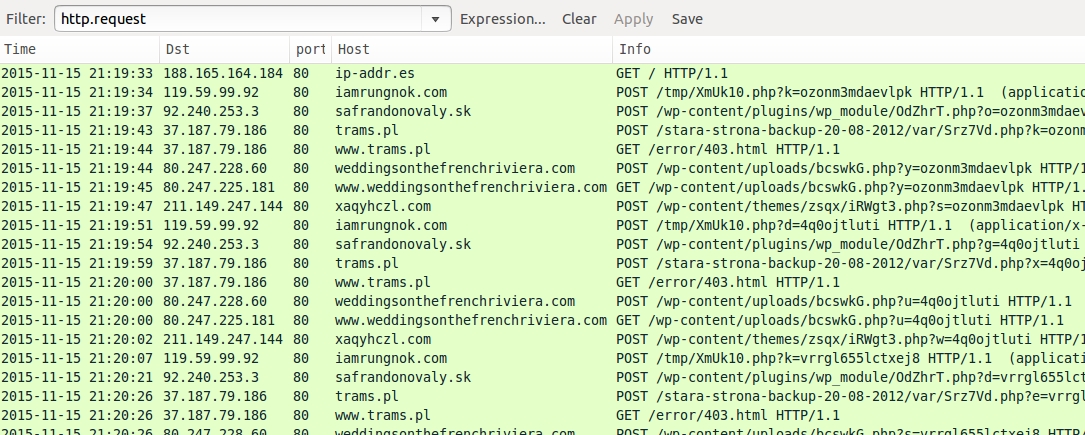 - 2015-11-15 20:40:19 UTC - xaqyhczl[.]com - POST /wp-content/themes/zsqx/iRWgt3.php?a=2gxmg8h3k49bs