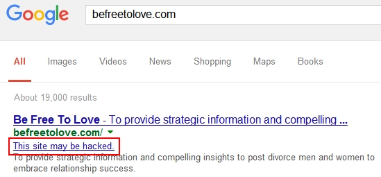 Shown above: On 2015-12-08, Google said the site may be compromised.