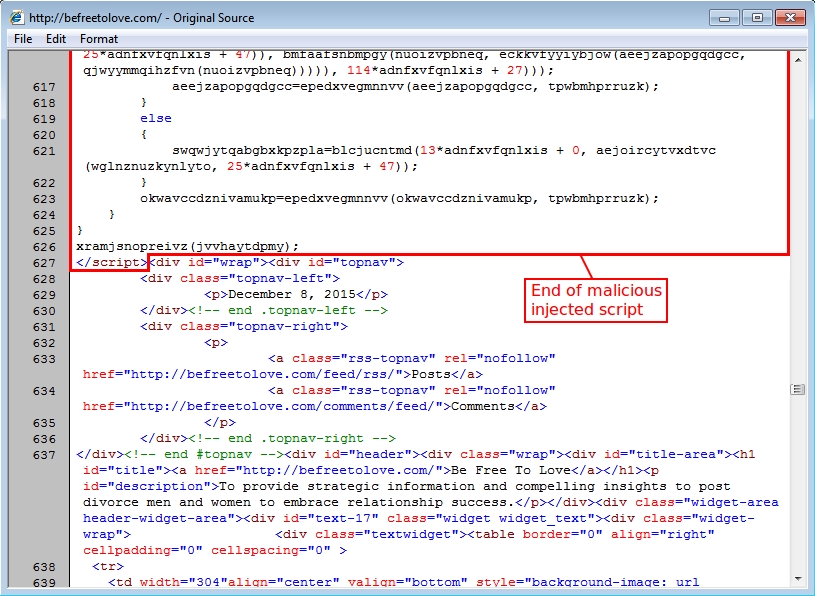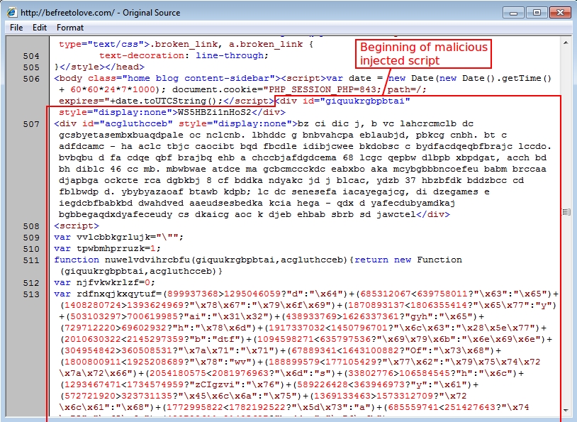 Shown above: Turns out it was! See above for start of injected script in page from comrpomised website.