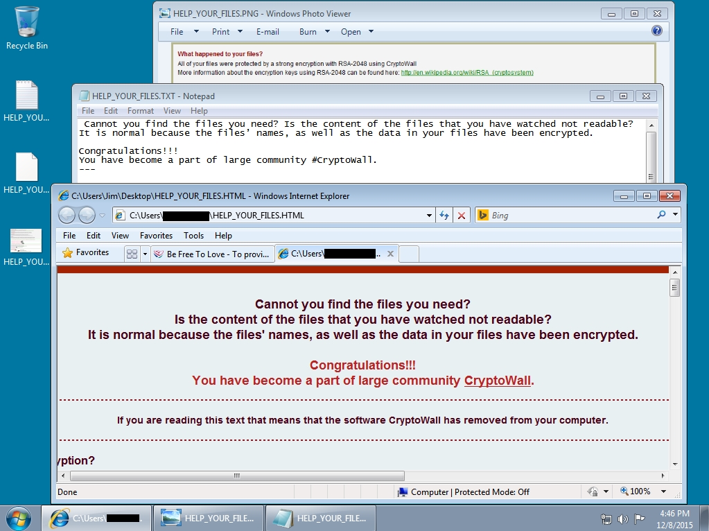 Shown above: Windows desktop minutes after the malware payload (CryptoWall) was delivered.