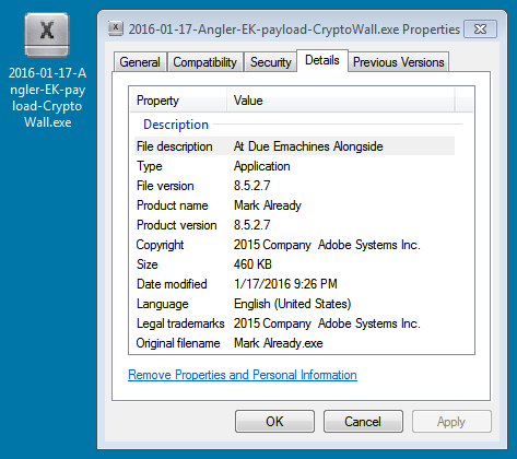 File name: 2016-01-17-Angler-EK-payload-CryptoWall-ransomware.exe