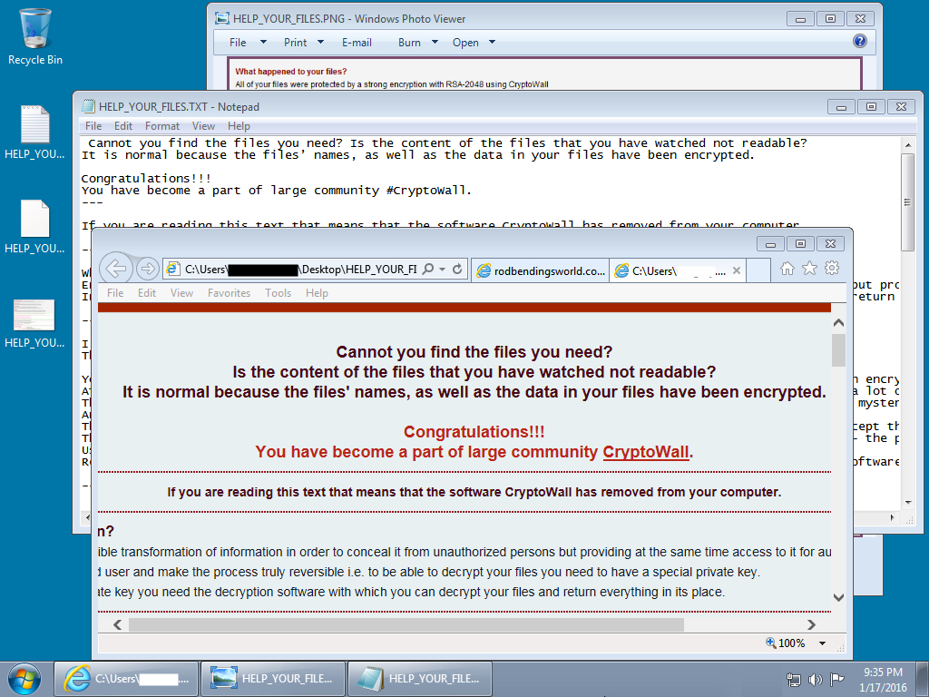 Shown above: Windows desktop after this CryptoWall ransomware infection.