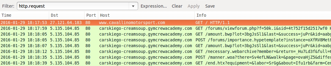 - 5.135.104[.]85 port 80 - carskiego-creamsoup.gymcrewacademy[.]com - Angler EK