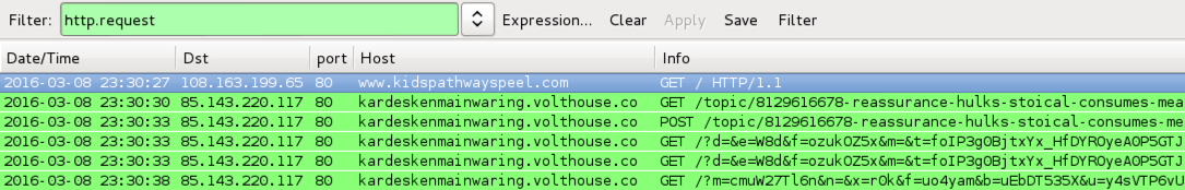 Shown above: Traffic from the pcap filtered in Wireshark.