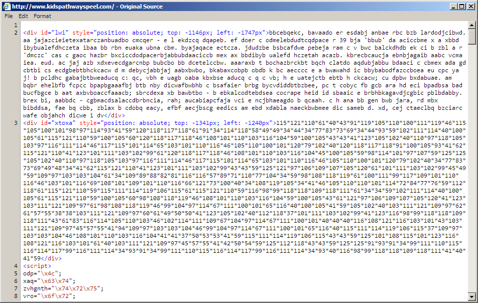 Shown above: Start of injected pseudo-Darkleech script in page from a compromised web site.
