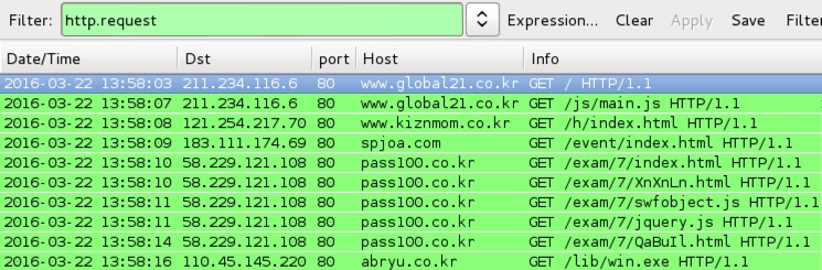 - 121.254.217[.]70 port 80 - www.kiznmom[.]co[.]kr - First gate/redirect