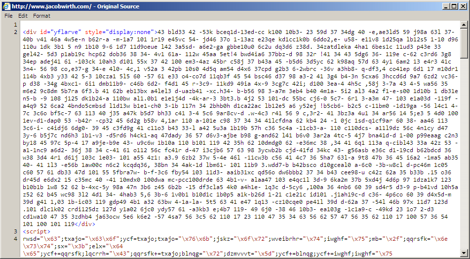 Shown above: Start of pseudo-Darkleech injected script in page from compromised site.