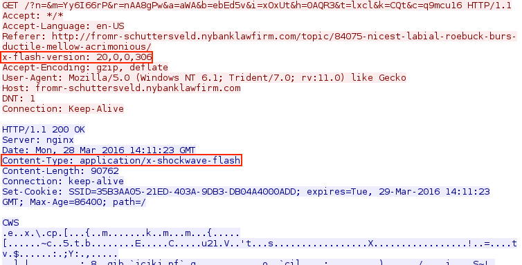 - The Flash exploit from this traffic was sent against Flash Player 20.0.0.306, which Kafeine already noted this past weekend (link here).