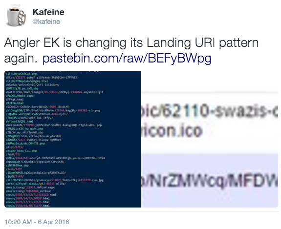 - Kafeine tweeted about the URL change earlier today at: https://twitter.com/kafeine/status/717733717041672192.