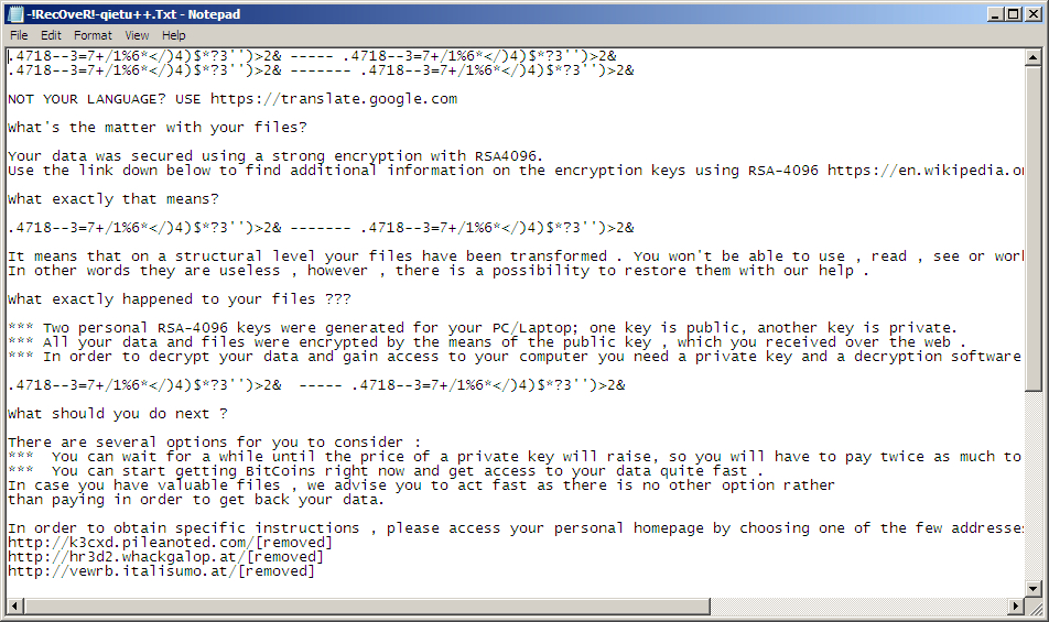 Shown above: Decrypt instructions (the text file) generated by the TeslaCrypt ransomware.