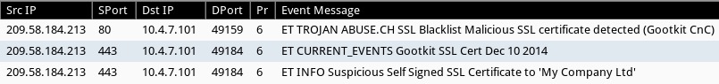 Shown above: Saw alerts for Gootkit on the post-infection traffic.