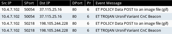 Shown above: Saw alerts for an Ursnif variant from the second infection.