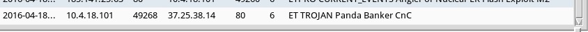 Shown above: Using the EmergingThreats ruleset, I saw alerts for Panda Banker malware from the EITest Angler EK traffic.