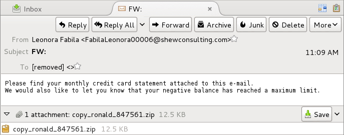 Shown above: Email pushing Locky ransomware example 1 of 2.