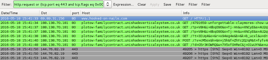 Shown aboe: Pcap of the traffic on a normal host filtered in Wireshark. http.request or (tcp.port eq 443 and tcp.flags eq 0x0002)