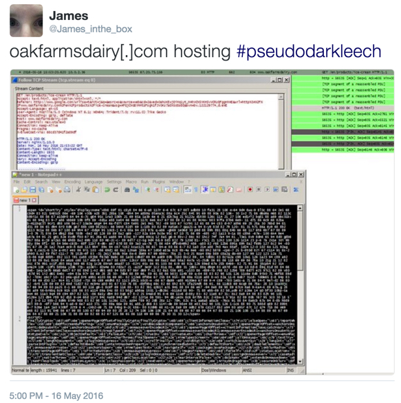- Pseudo-Darkleech script from today's compromised website first reported by @James_inthe_box one week ago on 2016-05-16, and the website is still compromised.