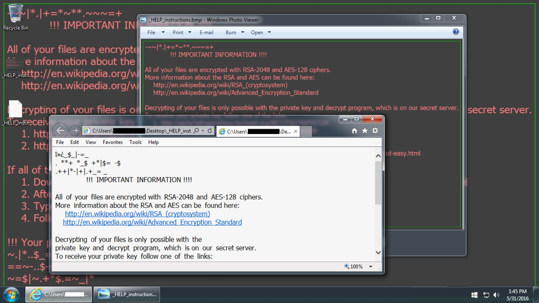 Shown above: Windows computer's desktop after one of today's Locky ransomware infections.
