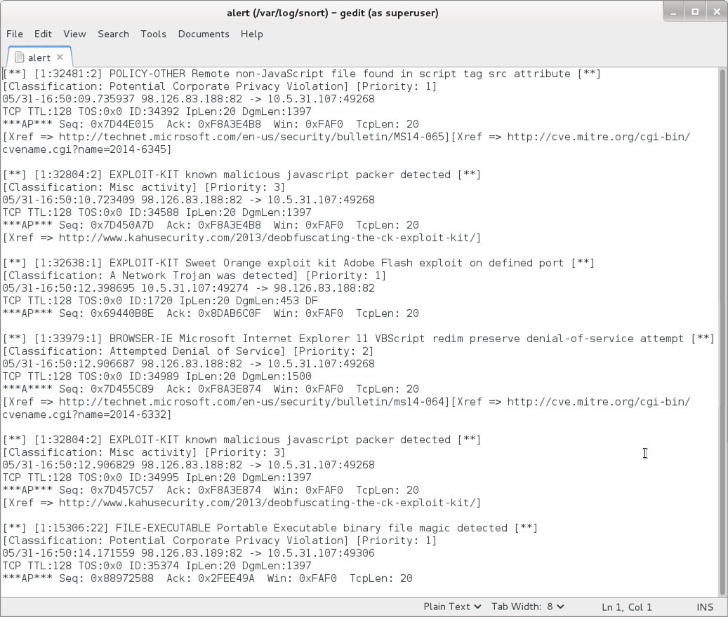 Shown above: Alerts from Sguil in Security Onion using Suricata and the ETPRO ruleset.