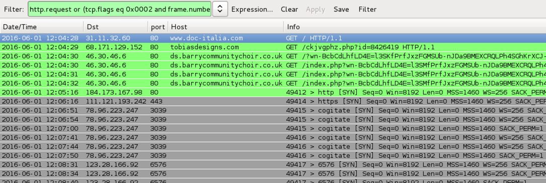 - Same type of infection seen on 2016-04-21, with the same compromised website and same gate domain (link).