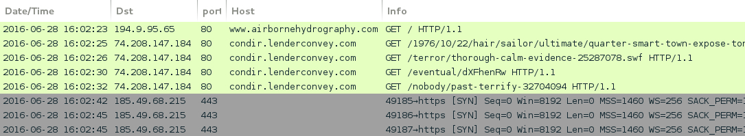 - 74.208.147[.]184 port 80 - condir.lenderconvey[.]com - pseudoDarkleech campaign Neutrino EK