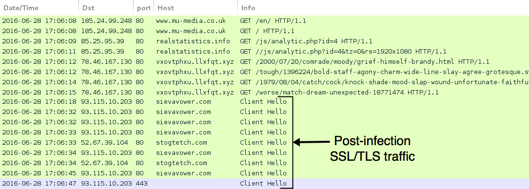 - 93.115.10[.]203 port 80 - sievavower[.com - Gootkit post-infection SSL/TLS traffic over port 80