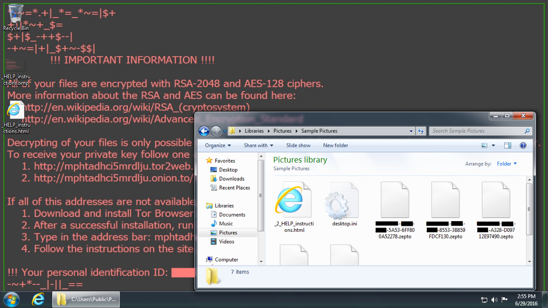Shown above: Windows desktop after today's Locky ransomware infection.
