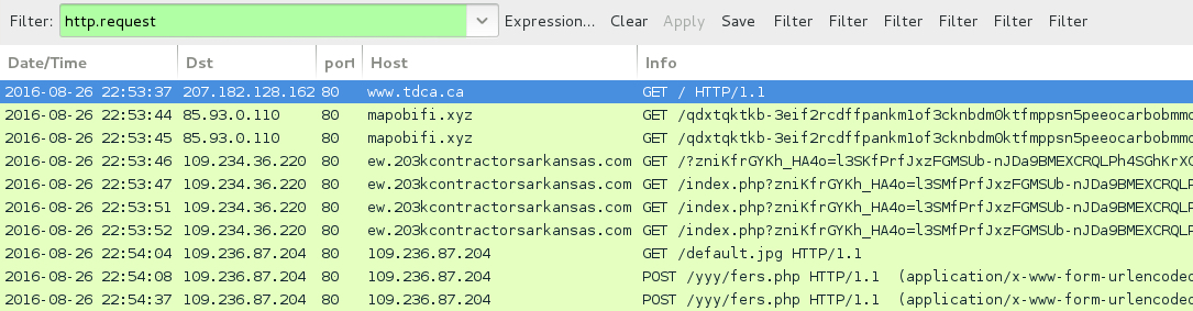 Shown above: Traffic from the pcap filtered in Wireshark.