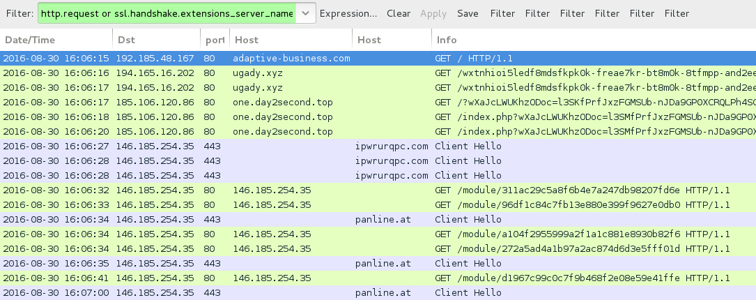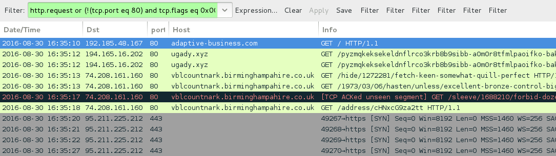 Shown above: Traffic from the EITest Rig EK infection filtered in Wireshark.