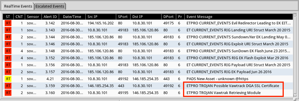 Shown above: Alerts on this traffic for Vawtrak in Security Onion using Suricata and the ET Pro ruleset.