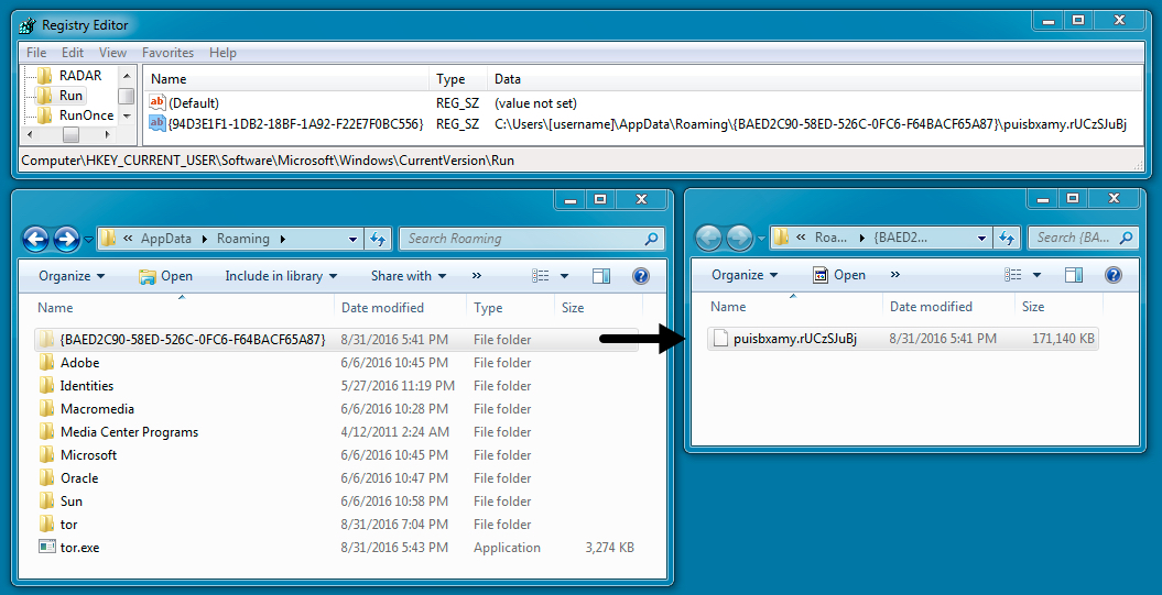 Shown above: Malware set up for persistence, as shown by the Windows registry.