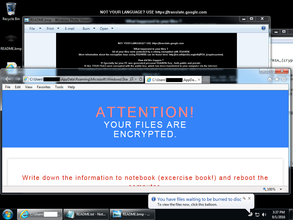 Shown above: Desktop of an infected Windows host after rebooting.