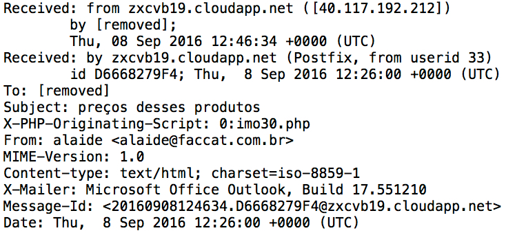 Shown above: Some of the email headers.