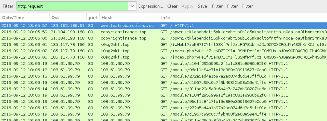 - 31.184.193[.]168 port 80 - copyrightfrance[.]top - EITest gate