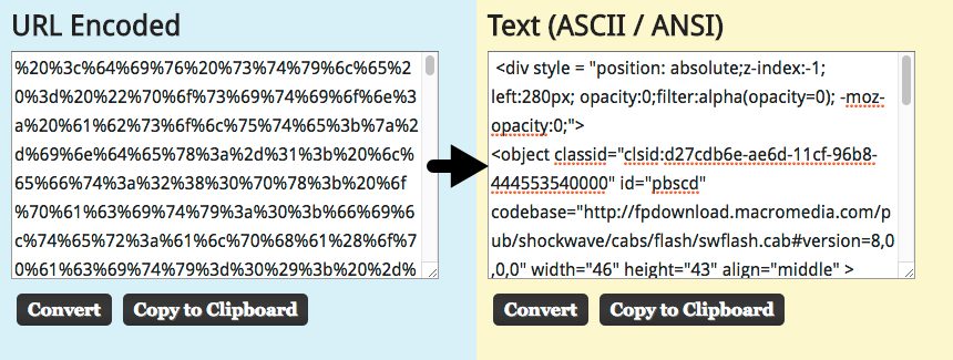 Shown above: Take the variable from the script (the part with the % sign followed by double-digits/hex characters) to translate.